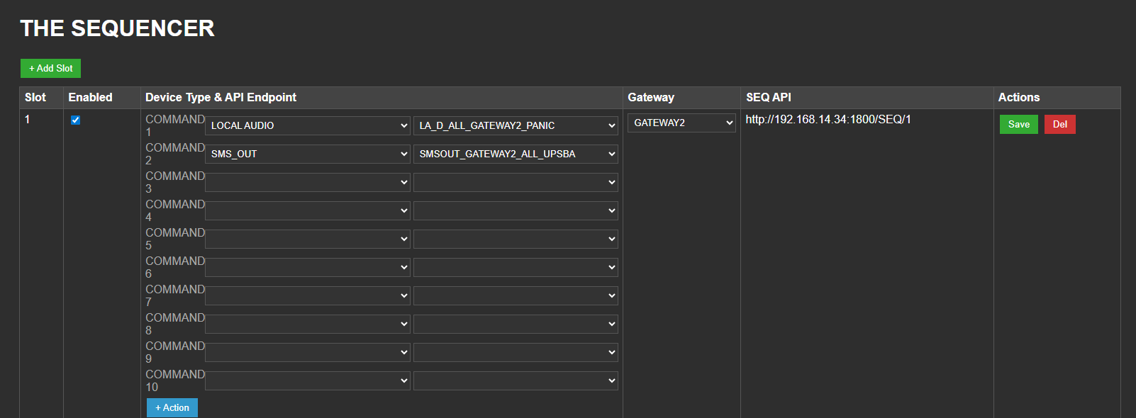 Every Gateway or Node can trigger actions directly through API commands or by running a pre-programmed Sequence.